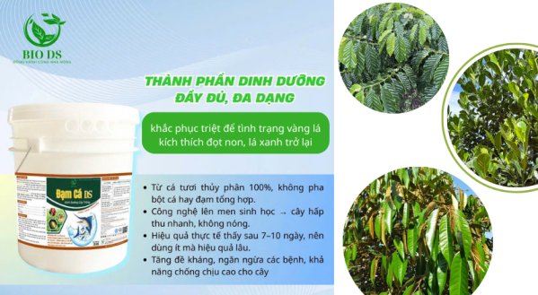 Để khắc phục triệt để tình trạng vàng lá, việc bổ sung dinh dưỡng dạng hữu cơ là giải pháp bền vững và an toàn nhất. Đạm Cá DS được đánh giá là dòng sản phẩm hàng đầu hiện nay trong việc phục hồi cây suy nhược.