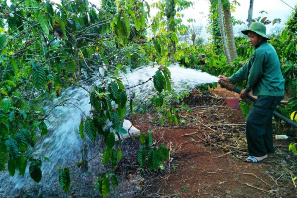 Tưới gốc cho cà phê kết hợp với bổ sung dinh dưỡng từ Đạm Cá DS